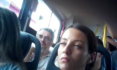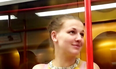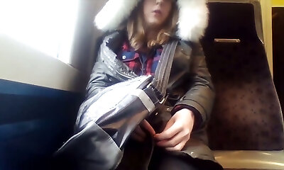 Depraved shemale enjoys to flash her private parts on public transportation