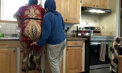 Wife fucked hard with tongue while washing dishes in the kitchen, getting her to spunk before her step-mom gets home.