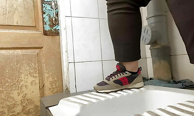 Terrible public toilet, fast piss and queue outside the door