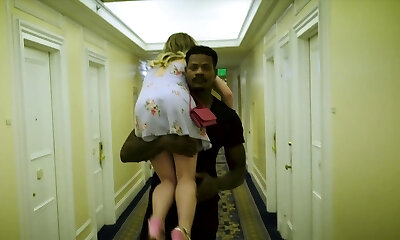 imponujący blondynka ma gonzo interracial hookup